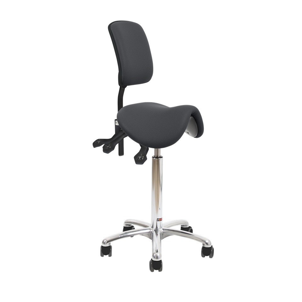 De VELA Samba 420 is voorzien van zadelkruk en smalle rugleuning en bevordert een actieve werkhouding. Deze stoel is zeer geschikt voor werkzaamheden in de kliniek, waar de tandarts / assistent dicht bij de patiënt en bij elkaar moeten zitten. De stoel is op eenvoudige wijze aan te passen aan de individuele behoeften van de behandelaar. De smalle rugleuning faciliteert bewegingsvrijheid met behoud van de comfortabele support dat gewenst is in een actieve werkhouding.